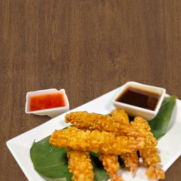 Shrimp coated in a light, airy batter and deep-fried until golden and crispy.