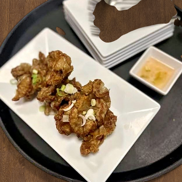 Crispy deep-fried pork ruffle fat served with vinegar dipping sauce.