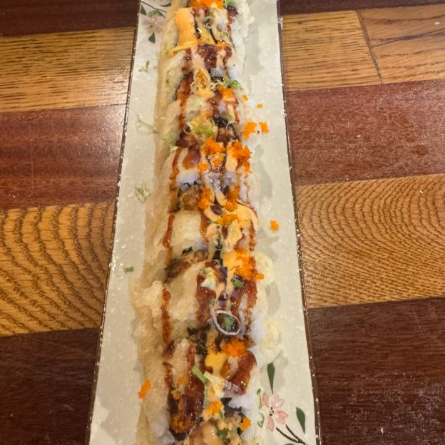 California Roll, Rainbow Roll, Eel Avocado Roll, Shrimp Tempura Roll, Spicy Tuna Roll, Spicy Tuna Roll, New Dragon Roll, Mango Shrimp Roll, 6pcs Sashimi, 6pcs Sushi, Godzilla Roll