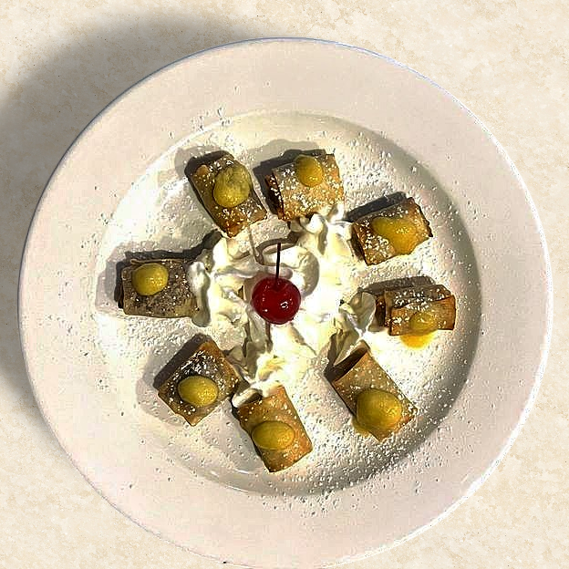 Spring Roll stuffed w. ground chicken, bean thread, and vegetable.