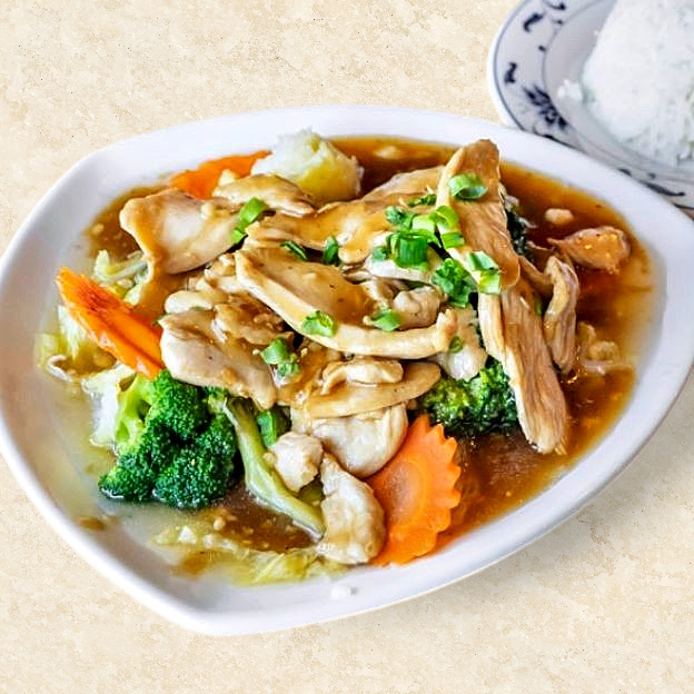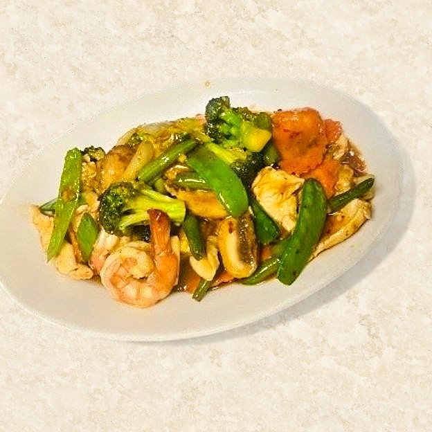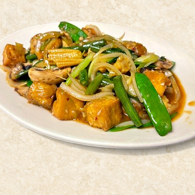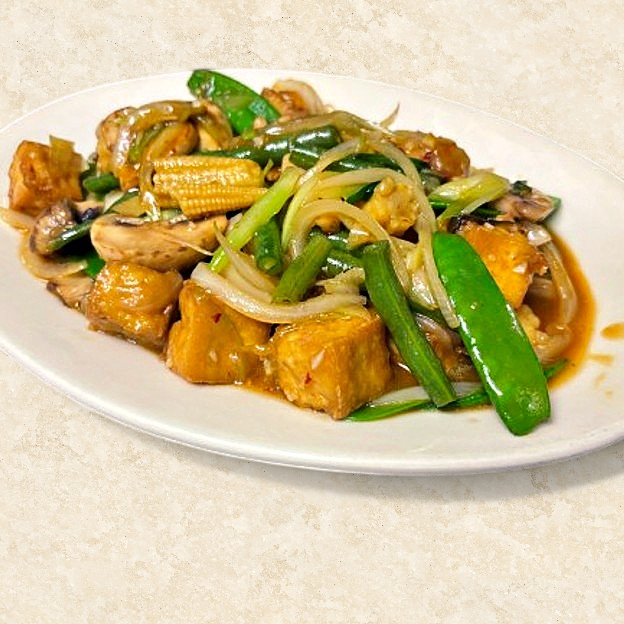 Your choice of meat* stir fried with green beans, onions, bell peppers, carrot, baby corn,
