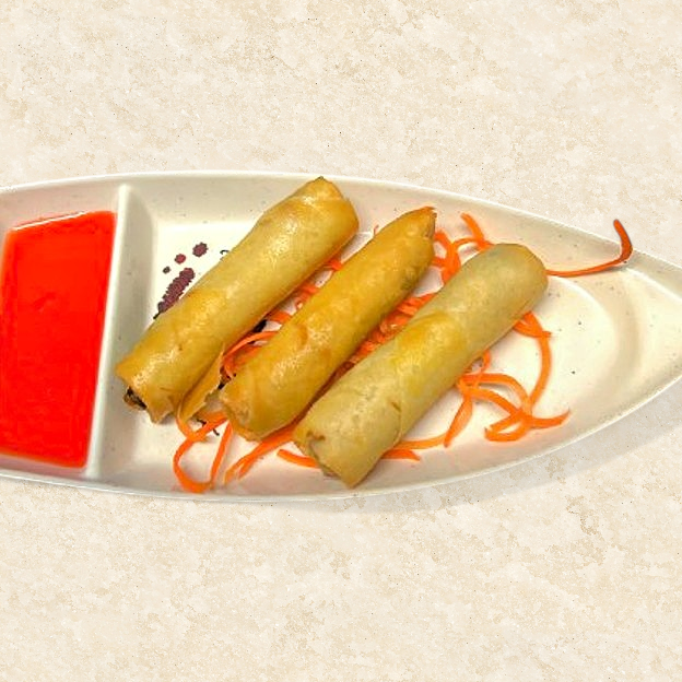 Spring roll stuffed w. bean thread, cabbage, carrot, onion and celery.