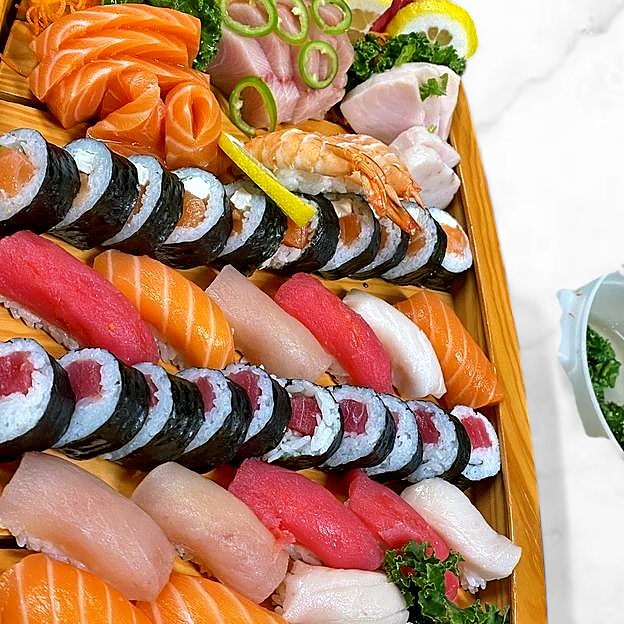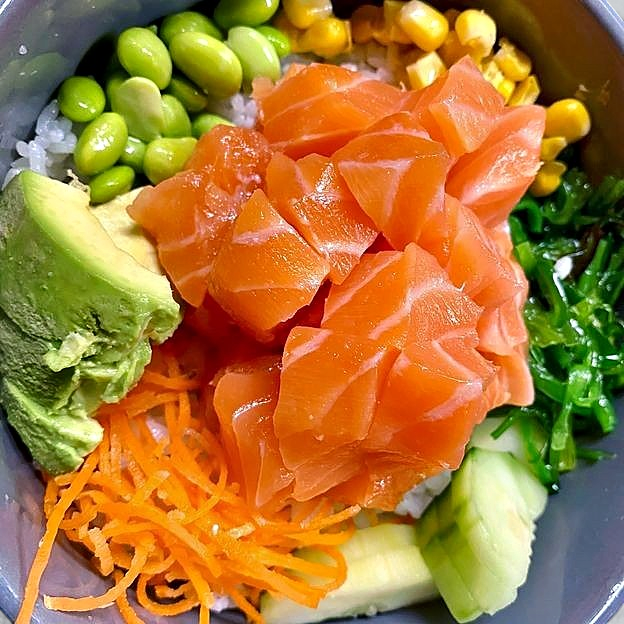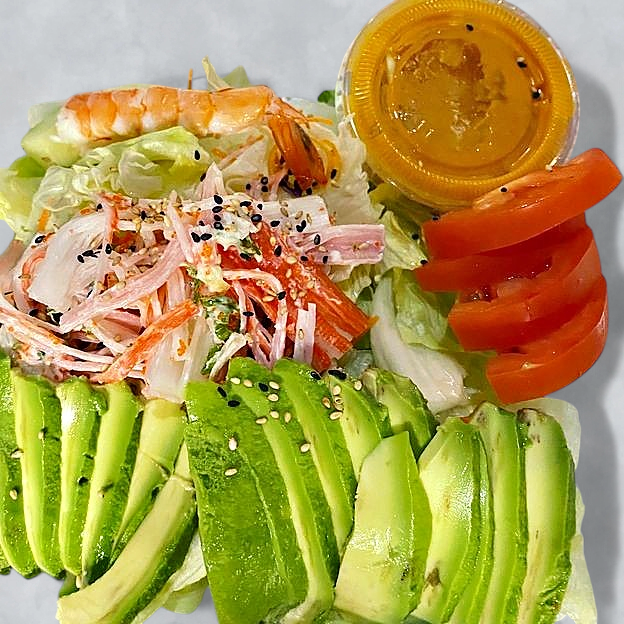 Crab, avocado & mago rolled in paper thin cucumber, served with rice vinegar