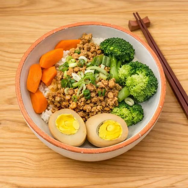 Rice, Ground Pork, Pickled Mustard, Egg, Bok Choy, Scallion