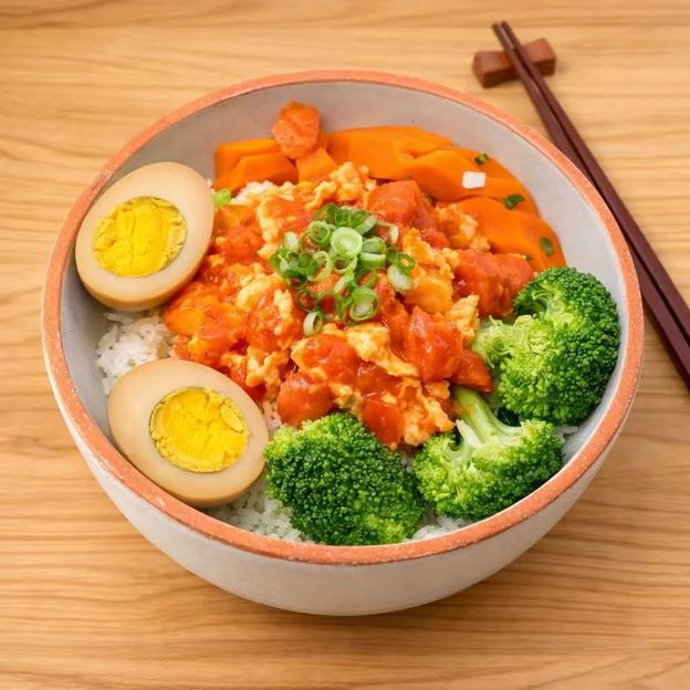 Rice, Tomato, Egg, Broccoli, Carrot, Scallion