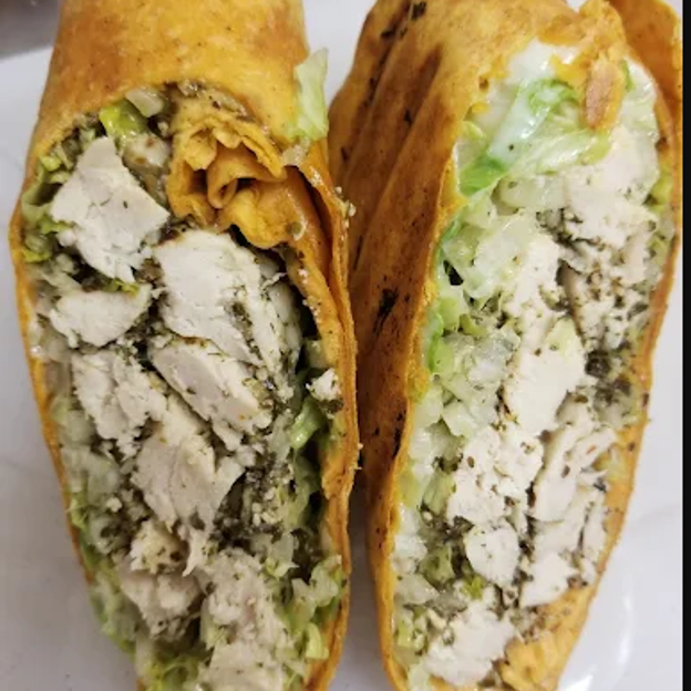 Grilled Chicken breast, fresh chopped Romaine, basil Pesto, Provolone Cheese, tomatoes on tomato basil wrap. Served with a bag of plain Lays or a fresh fruit.