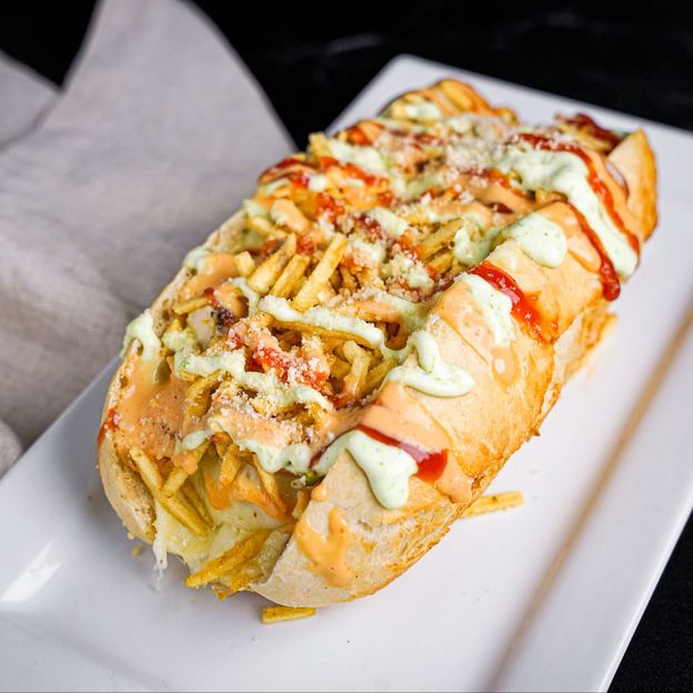 Papa con queso, carne molida, pollo o pizza/ Potato with cheese, beef, chicken or pizza.