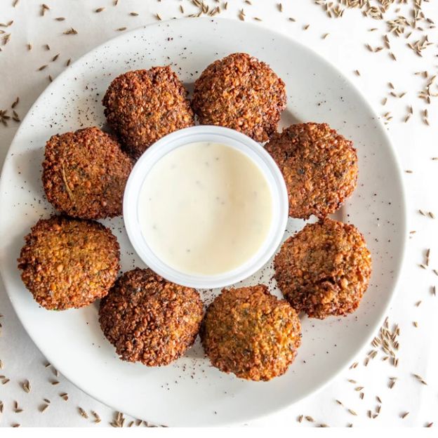 Ground roasted red peppers, garlic, lemon juice, olive oil and sumac