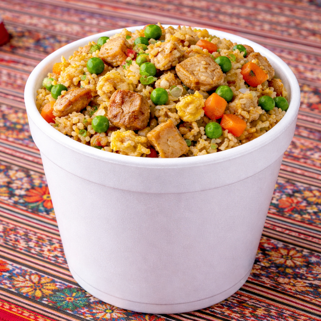 Peruvian dish made with spaghetti sautéed with tender chicken, red onions, tomatoes, peppers and herbs,