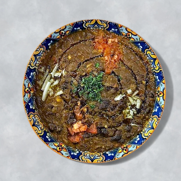 Creamy fava beans simmered to perfection and blended with fresh lemon juice, crushed garlic, cumin, and cold-pressed olive oil. Finished with diced tomatoes, parsley, and a drizzle of tahini