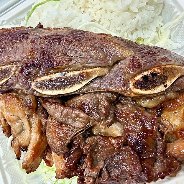 Serves 4-6 people. 5pcs BBQ chicken, 5pcs BBQ beef, 5 pcs chicken katsu ,6 scoops steamed rice, 6 scoops macaroni salad, malasada.