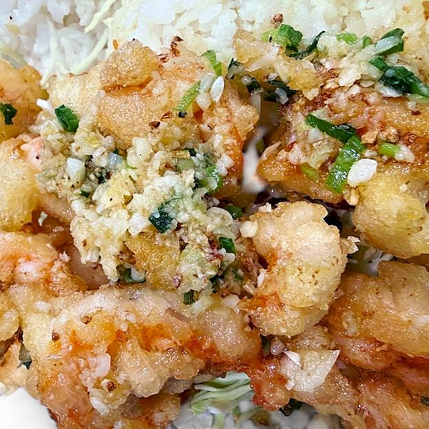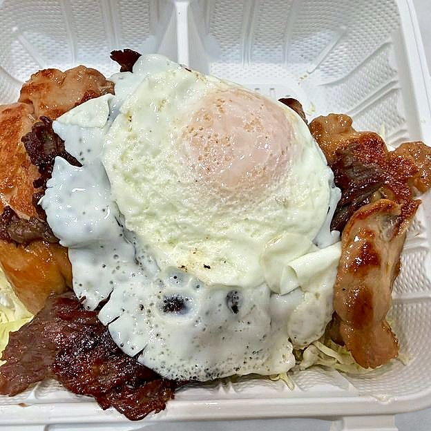 Serves 6-8 people. 8 pcs BBQ chicken, 8 pcs BBQ beef, 8 pcs chicken katsu, 8 scoops Steamed rice, 8 scoops Macaroni salad, Malasada