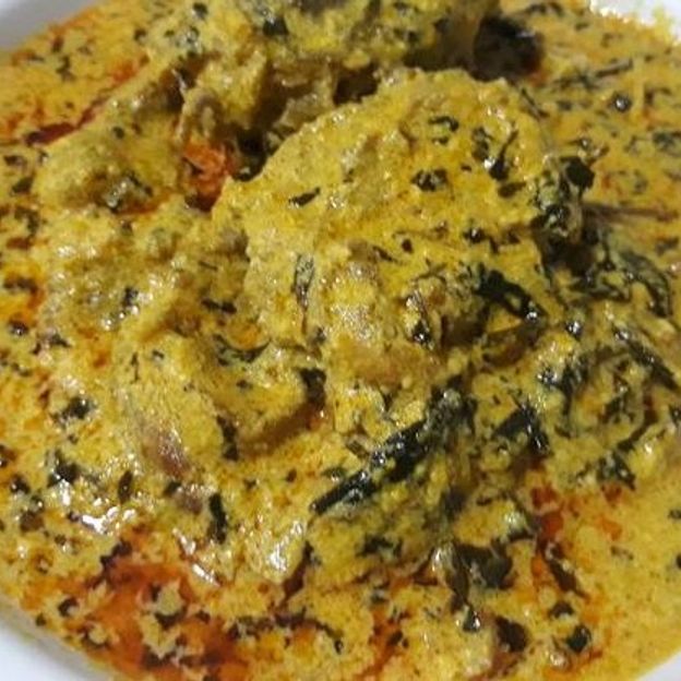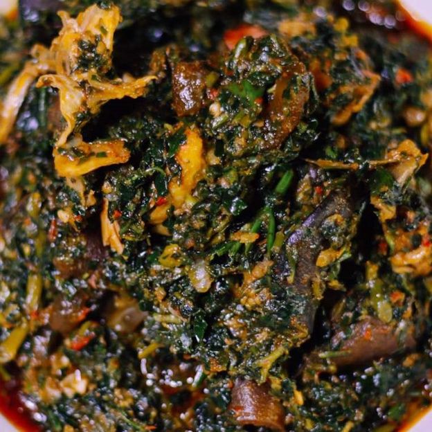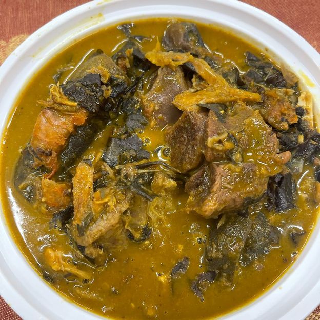 This is a Nigerian native soup that is prepared with traditional ingredients, including bitter leaf, crayfish, pepper, cocoyam and palm oil. Swallow is included, select your protien.