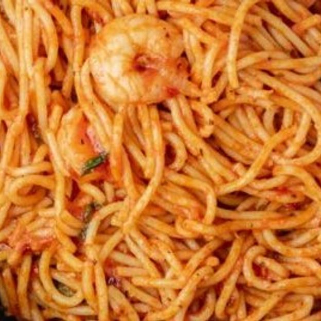 Spicy, Arona sauce tomato base. well prepared with spaghetti, vegetables, spices and shrimps