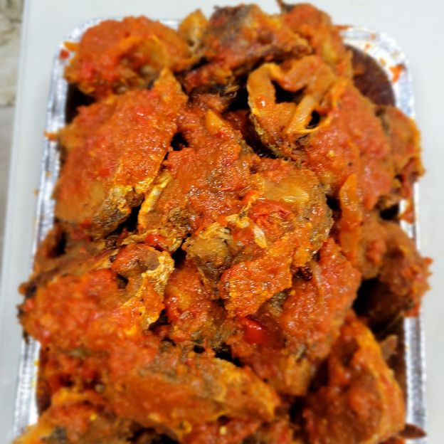 Ofade Sauce special is prepared with red bell pepper, onion, iru, and crayfish, egg with assorted fried meat diced. Serve with Ofada rice or White Rice and Beans.