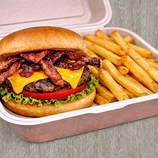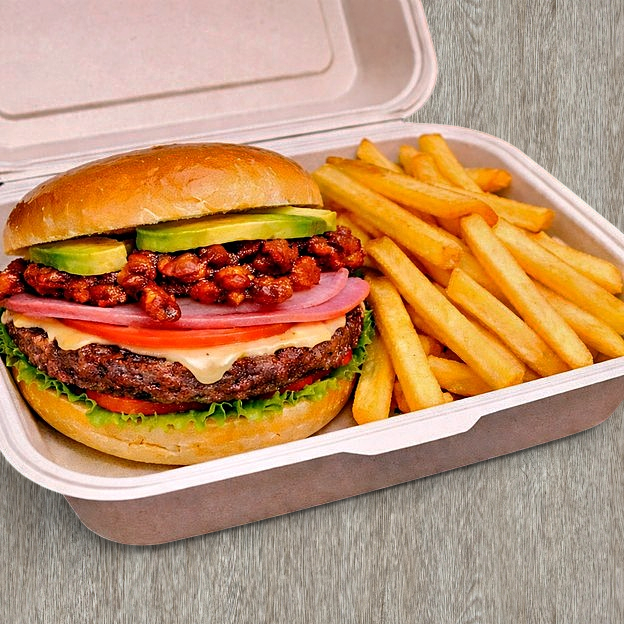Incluye Carne De Res, Salsa de Barbecue, Jamón, Queso Blanco, Lechuga, Tomate, Aguacate, Jalapeños, Cebolla Asada, Mayonesa, Ketchup. (Papás a un lado). Includes Burger Patty, BBQ Sauce, Ham, White Cheese, Lettuce, Tomato, Avocado, Jalapeños, Grilled Onions, Mayonnaise, Ketchup. (Frenxh Fries on the side).