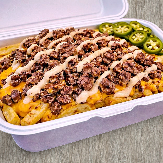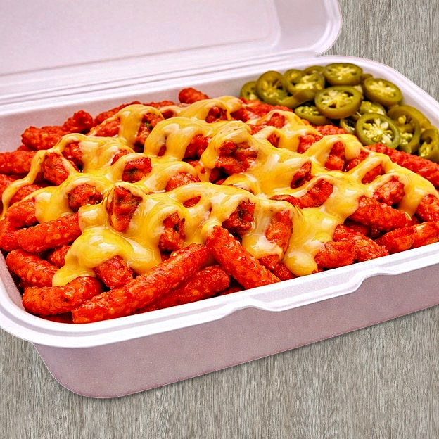 Incluye Frijoles, Queso, (Opción de Carne), Hot Cheetos, Queso De Nacho, Jalapeños, Mayonesa. Includes Beans, Cheese, (Choice of meat), Hot Cheetos, Nacho Cheese, Jalapeños, Mayonnaise.