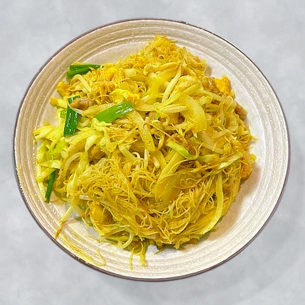 Mei fun w/chicken,pork,shrimp and egg in curry sauce