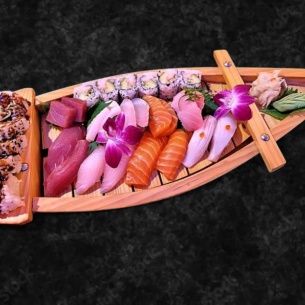38 pcs. Raw . 3 Regular Rolls and 10 pcs Sushi or 10 pcs Sashimi