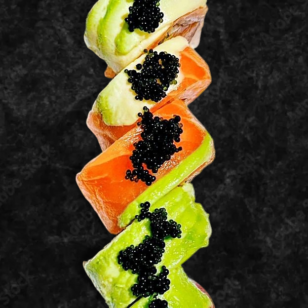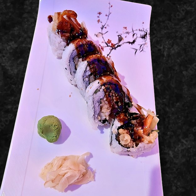 50 pcs . Raw. 7 regular Roll and 1 Dragon Roll