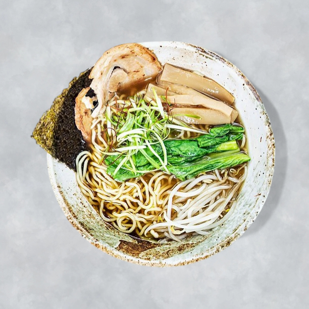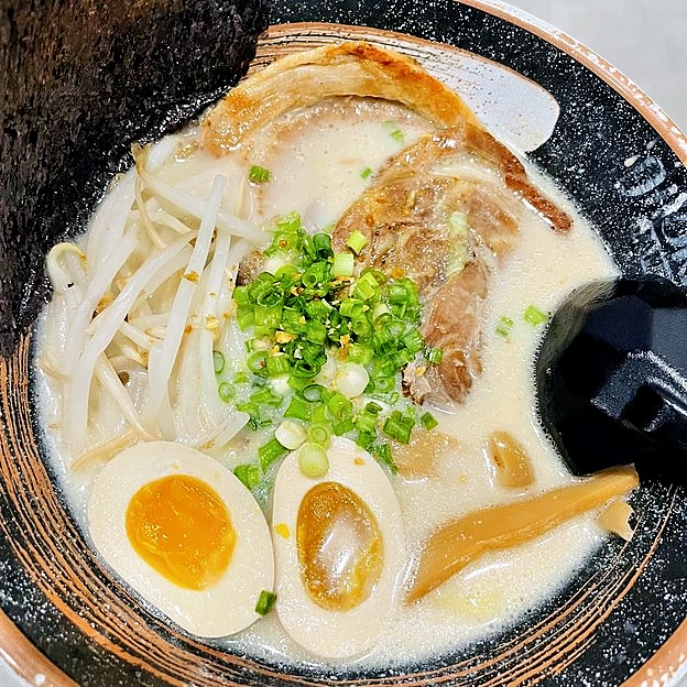 An extra rich pork bone broth with a lightly soy sauce base.Toppings: A slice of grilled pork chashu, a marinated egg, bamboo shoots, bean sprouts & julienned green onions