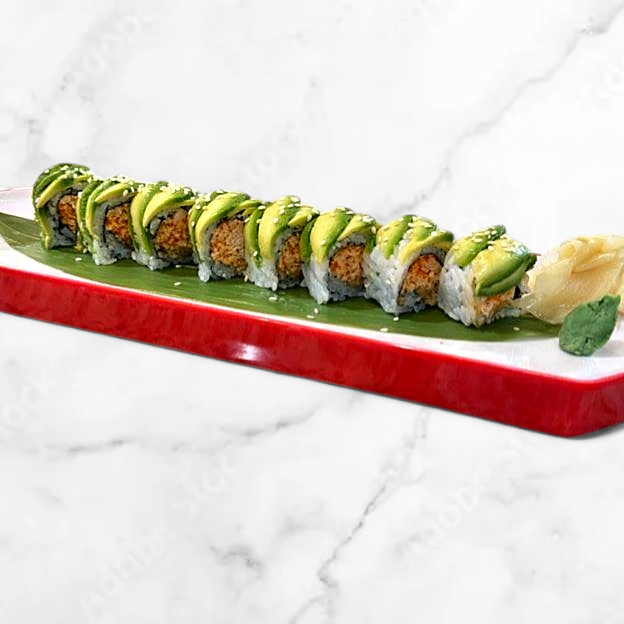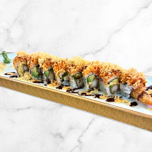 Shrimp tempura, avocado, topped with spicy crab, crunchy & spicy mayo eel sauce