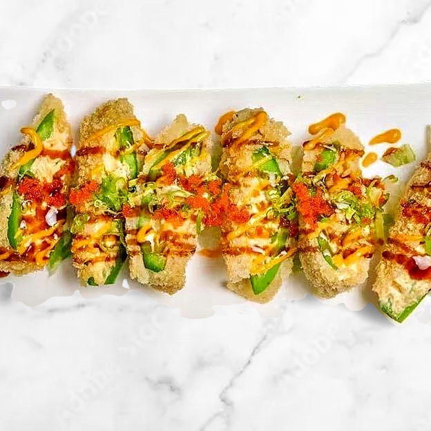 Jalapeno stuffed with cream cheese, tuna deep fried with house sauce