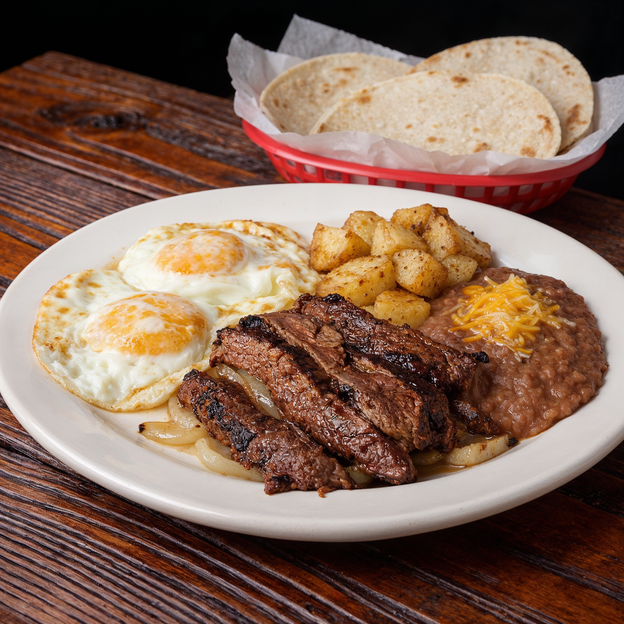 Cooked any style. Served with Beans, Potatoes and 2 Tortillas.