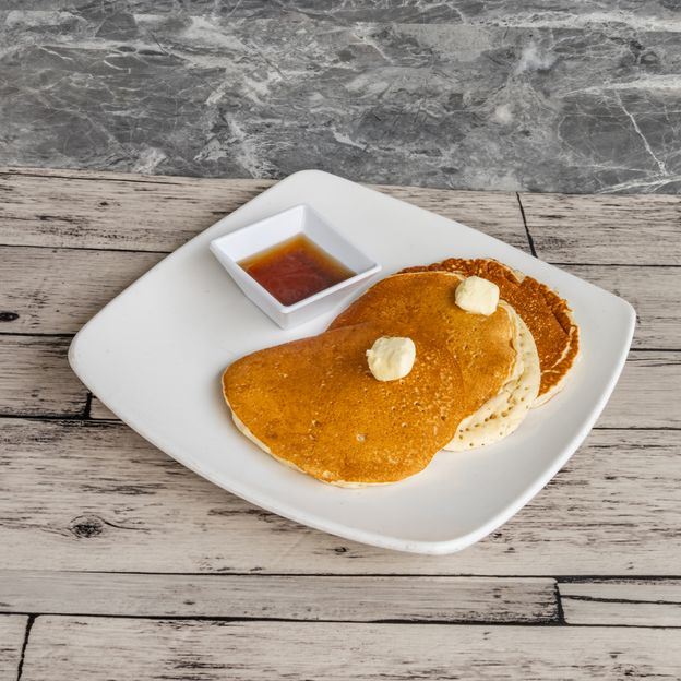 2 Eggs any style, 2 Slices of Bacon,3 Links, Hash Brown and Toast.