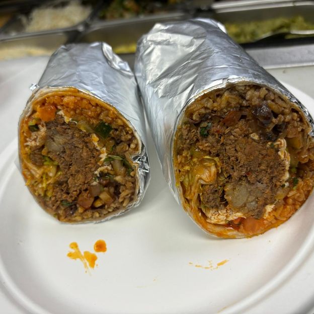 Flour Tortilla, wrapped with rice, beans. Sour cream, Lettuce Cheese and Choice of protein