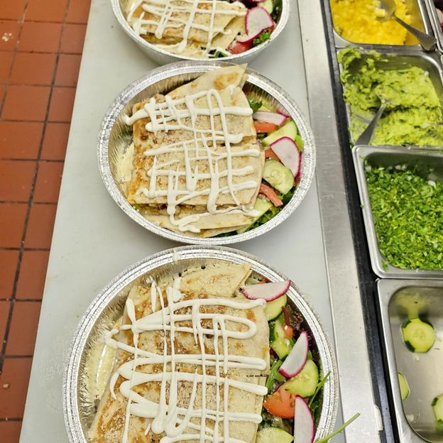 Flour Tortilla, with Cheese, Topped with sour Cream, and Choice of protein side of house salad