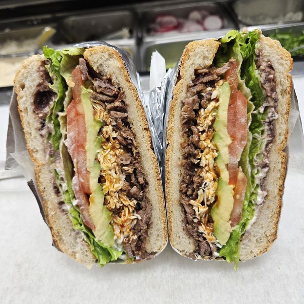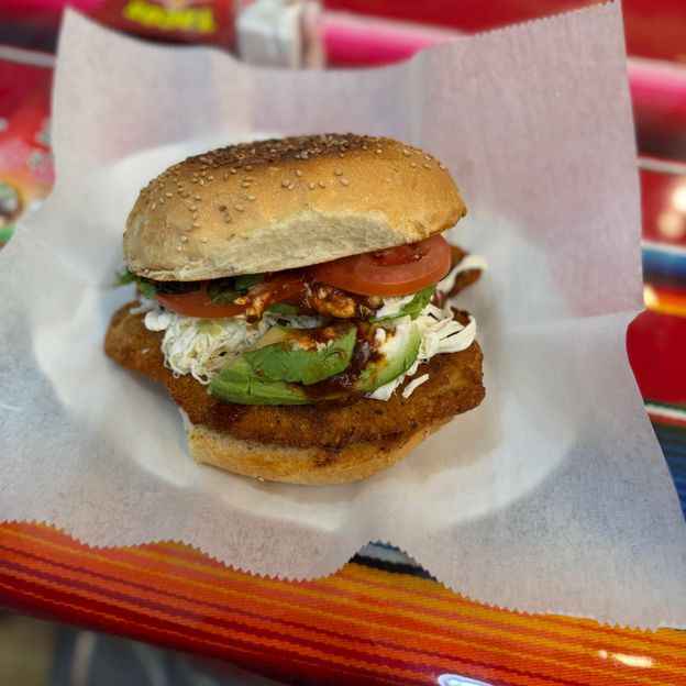 Mexico Sandwich with beans, mayo, Oaxaca. Cheese, Lettuce, Tomato Avocado, Jalapeño. Choice any of protein milanesse de res (beef)(chicken)