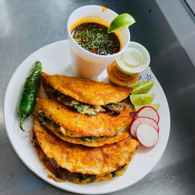 Mozzarella Cheese, Onions, Cilantro, Consome