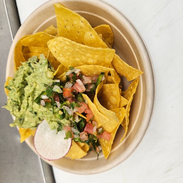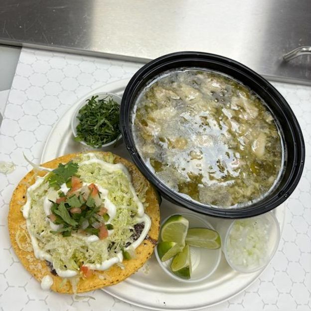 Crispy fried tortilla with Cheese topped, Lettuce Sour cream, onions, cilantro, Consome