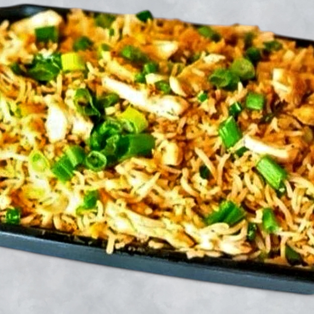 Fragrant Rice Stir-Fried with Tender Chicken Pieces, Fresh Vegetables and a Blend of Savory Sauces.