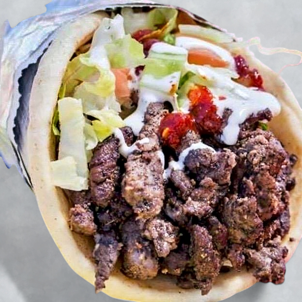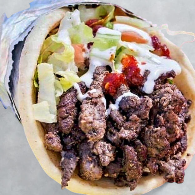 Warm pita sandwiches filled with tender meat, fresh lettuce, tomato, cucumber and onions finished with our famous white sauce, and spicy sauce.