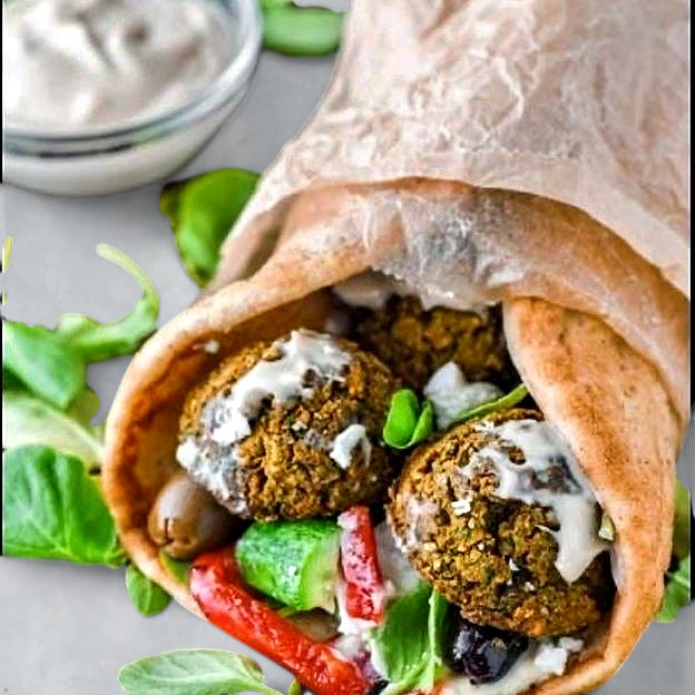 Warm pita sandwiches filled with Fried Veggie Balls , fresh lettuce, tomato, cucumber and onions finished with our famous white sauce and spicy sauce.