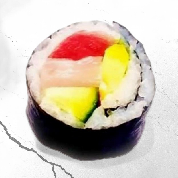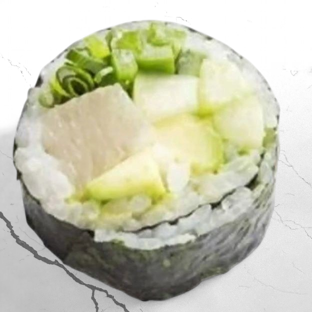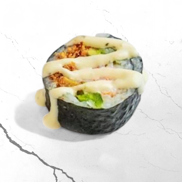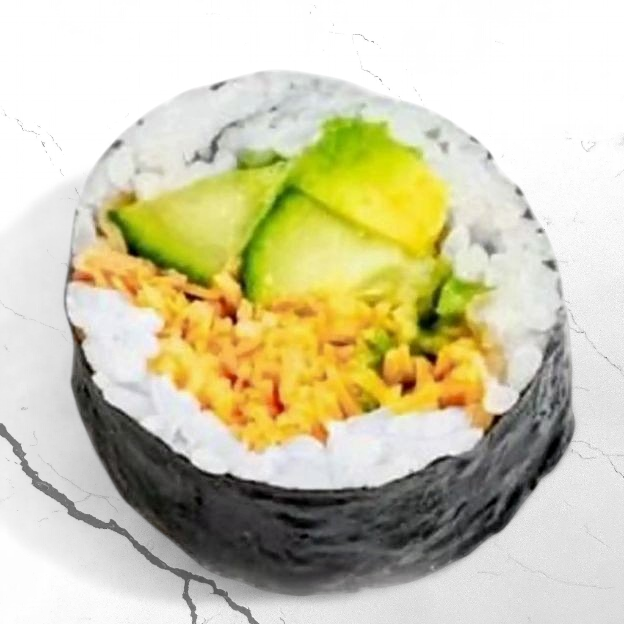 Avocado, Cucumber, Edamame, Carrot, Kimchi, Jalapeno, Sweet corn, Cream Cheese, Pineapple, Green Onions and Yum Yum Sauce