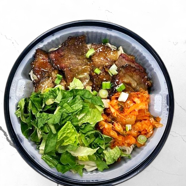 Grilled beef, kimchi,vegetables, ramen noodles,Japanese-flavored soup