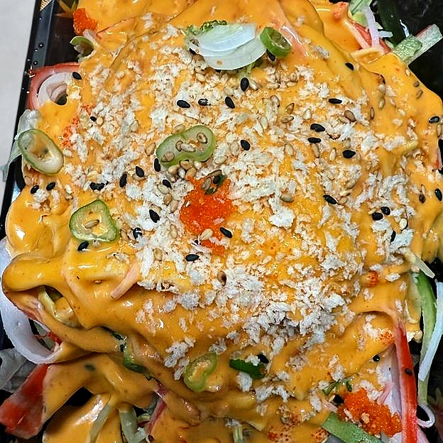 Chunk salmon with avocado, scallion and our chef's special sauce
