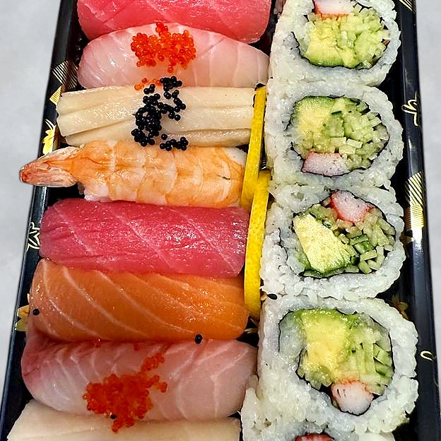 4 pcs of sushi and 6 pcs of sashimi from chef's choice and California roll