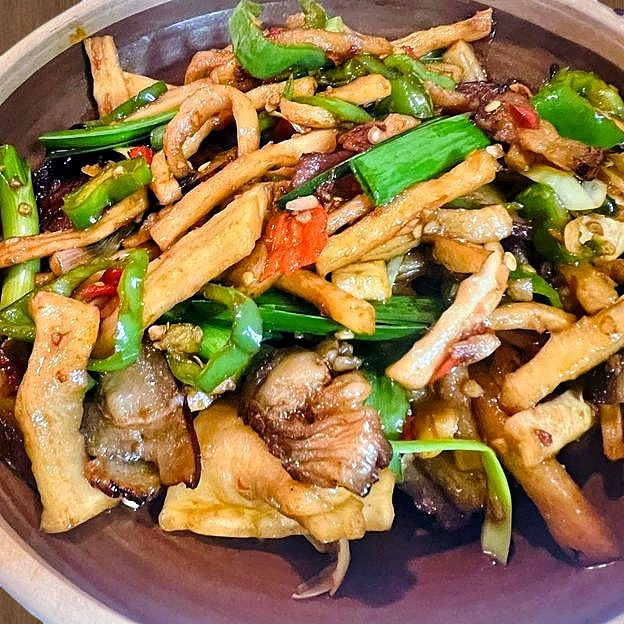 Sauteed Bean Curd With Green Pepper & Garlic Leaves 青椒大蒜叶炒香干