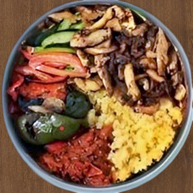 A generous bed of fragrant, golden saffron rice topped with juicy, freshly grilled doner meat. finished with crisp lettuce, red pickle cabbage , tomatoes, cucumbers and red onions.