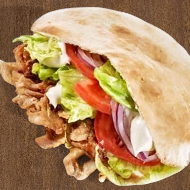 Juicy, freshly grilled doner meat tucked inside warm, fluffy home-made pita, layered with fresh veggies, creay garlic saltify secret sauces.