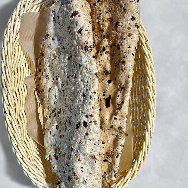 Papadam: Thin and crispy wafers made from lentil flour, typically seasoned with cumin or black pepper.