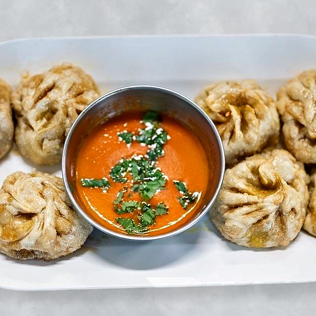 Steamed vegetable nepali dumpling.