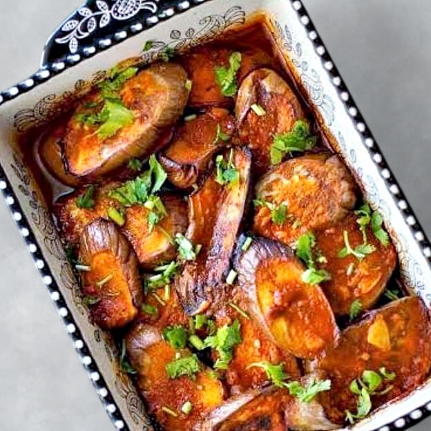 Tender eggplant slices layered with rich yogurt, topped with savory tomato sauce and garnished with fresh herbs.