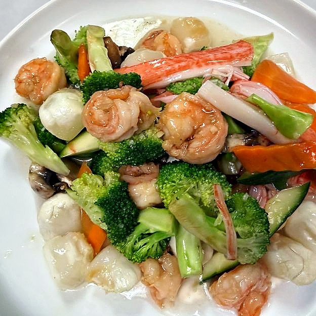 LS5. Stir Fried Scallops & Jumbo Shrimp w. Mixed Vegetables