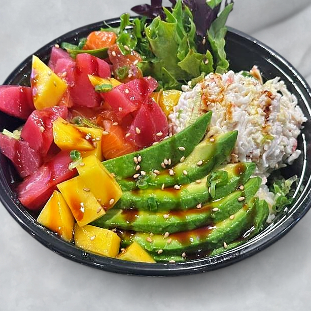 Shredded crab salad, with chili pepper, masago, mayo, sweet sauce, topped with baked scallops