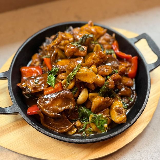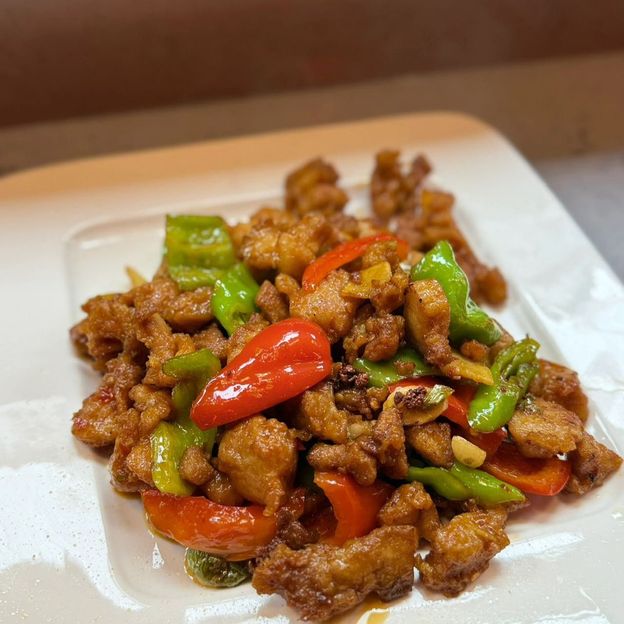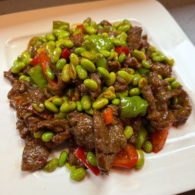 Stir fried lamb w. cumin sauce, onion, and cilantro